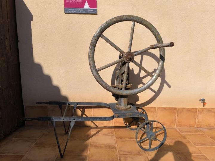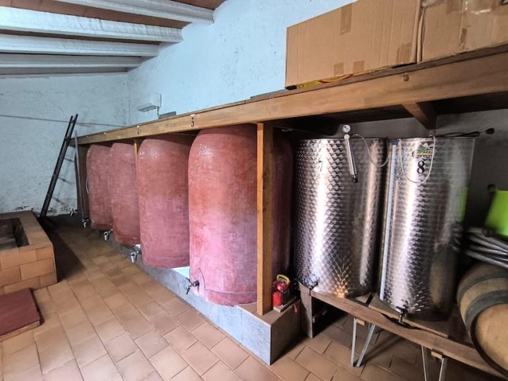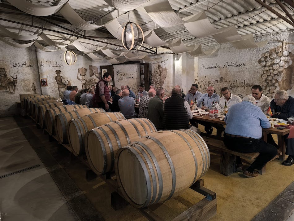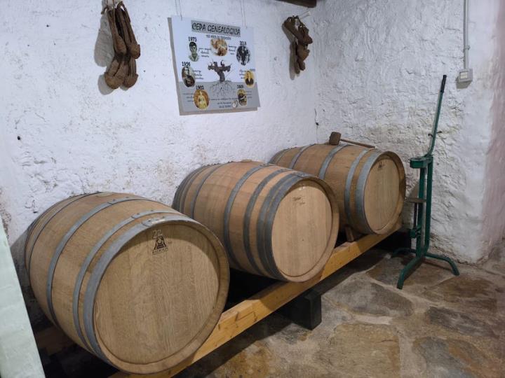 A continuación, han accedido a la bodega, la cual data del año 1869. Construida por gruesas paredes de piedra y techos de vigas, se pueden ver pisadores, una prensa centenaria y la sala de barricas de roble con tinajas de 1.100 litros.