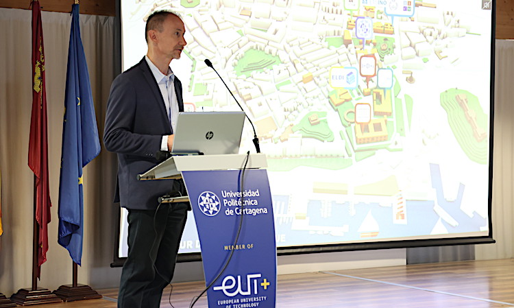 Experiencias internacionales accesibles para todos los estudiantes, nuevos pedagogías y emprendimiento estudiantil, objetivos de la 'EUt+ week' en las instalaciones dela Politécnica. El rector de la UPCT resalta las ventajas para el alumnado y el tejido productivo de la movilidad internacional de estudiantes y profesores.