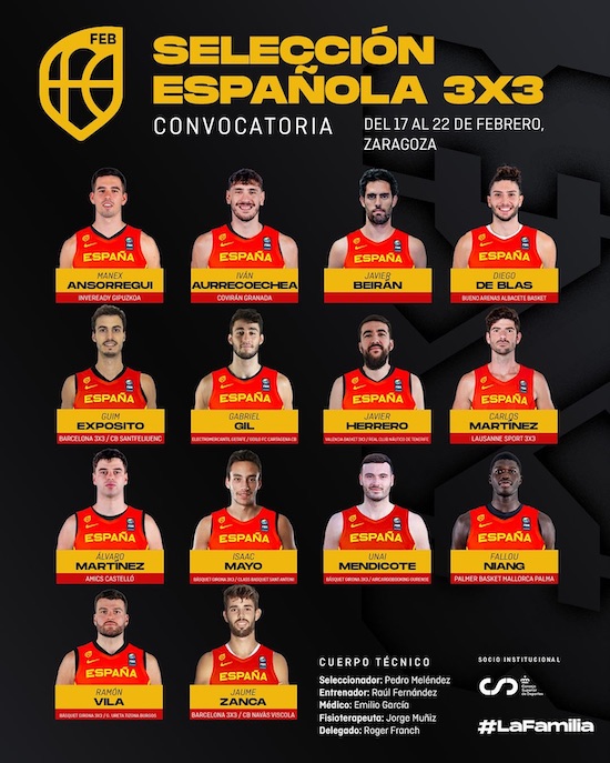 El ala-pívot gallego estará en la concentración de la selección española de 3x3 que tendrá lugar del 17 al 22 de febrero en Zaragoza, mientras que el '7 de los caballeros negros del Cebé' jugará con la selección de Países Bajos para la clasificación del Eurobásket 2025.