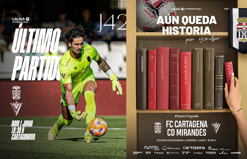 El FC Cartagena afronta el domingo (18.30 horas) lo que será, al menos durante un año, su último partido en el fútbol profesional después de varias temporadas. El equipo albinegro, plagado de bajas, recibe a un Mirandés que se juega el ascenso a primera división y que llegará con cientos de aficionados. Para que ascienda el equipo de Miranda de Ebro, no tiene que ganar el Elche en La Coruña ni el Oviedo en su casa ante el Cádiz. Si gana, empata el Betis y vence el Oviedo, habrá un triple empate del que se beneficia el cuadro iliciano. A priori, lo tiene muy complicado. Mientras, la dirección del club sigue afrontando su futuro, siendo la opción que más fuerza cobra la continuidad de Belmonte en la presidencia y que no habrá venta. La entidad, en los carteles previos al domingo, lanza un mensaje optimista: 'Queda mucha historia por escribir'. Otro frente es saldar las deudas con los futbolistas de la actual plantilla. También reseñar que el club están fijando destacados descuentos en su tienda del material oficial de esta temporada.