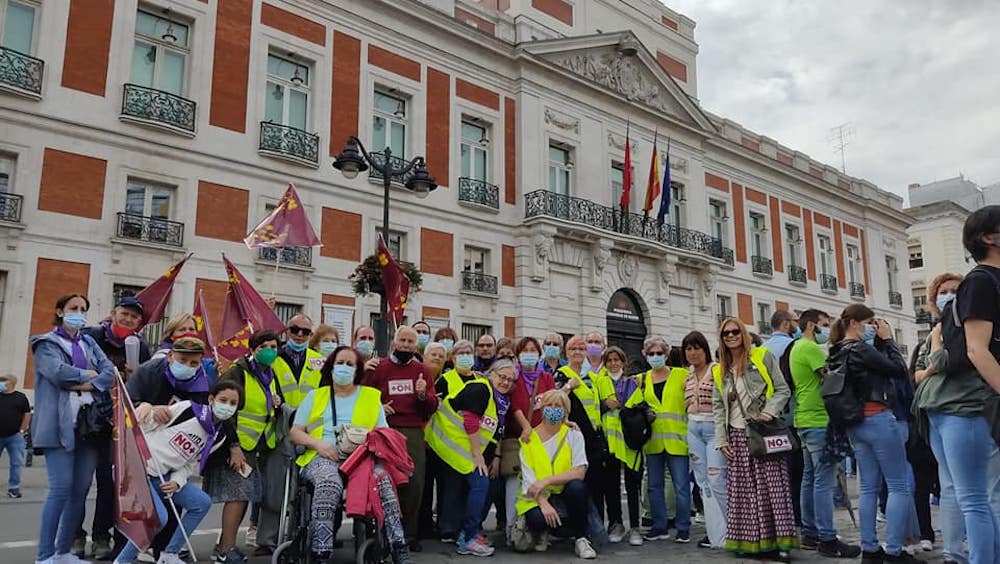 Los 'yayoflautas' cartageneros, firmes en Madrid en su lucha por las pensiones públicas