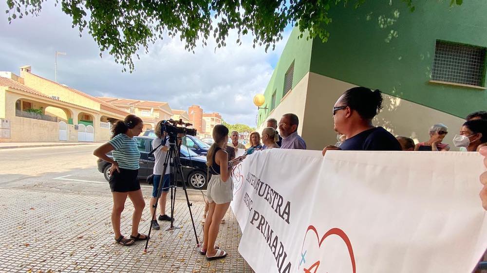 Un grupo de vecinos acudió al llamamiento del asociación vecinal de la localidad marmenorense y de la Federación de Asociaciones de Vecinos de Cartagena y Comarca para reclama un pediatra y un médico de desplazados paera esta población.