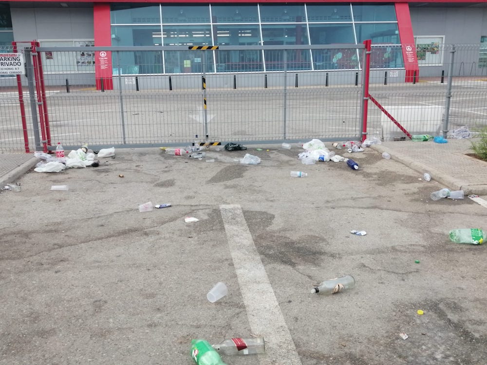 Los remitentes, en el correo electrónico enviado con fotos y vídeo que respaldan su problema, continúan diciendo que también se suceden las escenas de jóvenes de ambos secos "orinando sin pudor en el párking, en ocasiones, tirados por el suelo borrachos y en muy mal estado, alguno podría acabar en coma etílico. Los videos y fotos son el resultado de dicho botellón sobre las 7 de la mañana... y esto se repite cada fin de semana en verano. A todo ello hay que añadir de cómo queda todo este espacio. Aunque hay servicios municipales de limpieza, es una vergüenza y una malísima imagen para los clientes del centro y para el turismo".