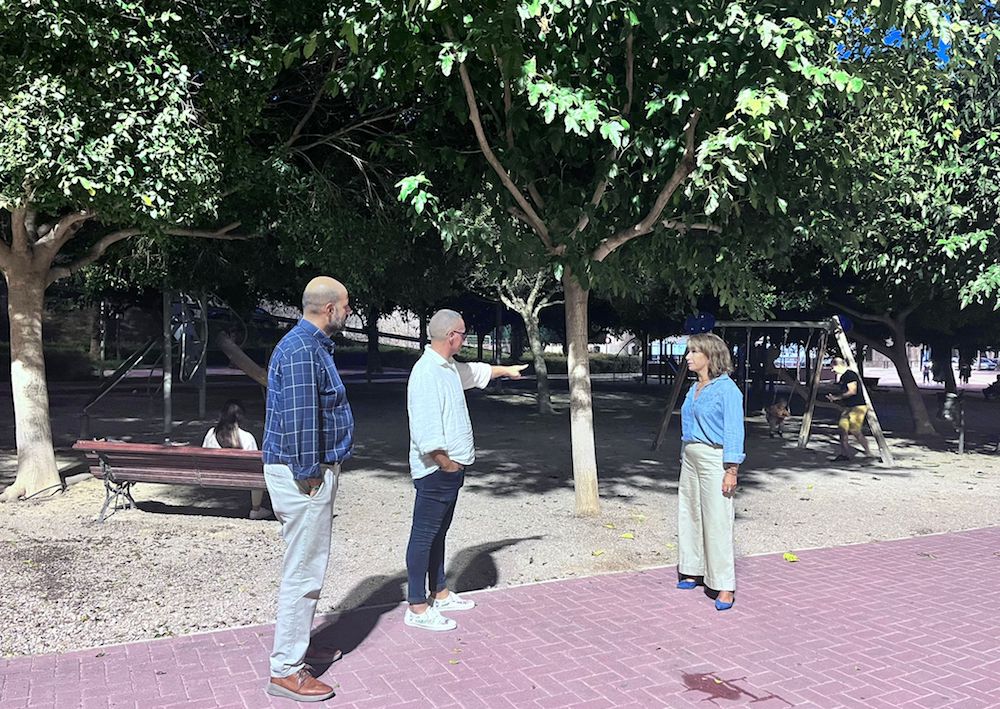 Cristina Mora, edil de este distrito, y Diego Ortega, concejal de Descentralización, recorrieron con el presidente vecinal la plaza de La Lonja para comprobar en el lugar el estado de la vieja escalera que enlaza la Muralla de Tierra y el parque infantil, que tras las lluvias se encuentra en un pésimo estado.