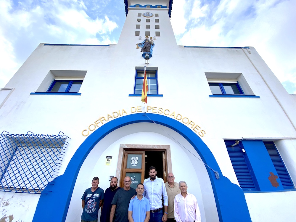 El presidente provincial, José Ángel Antelo, junto al equipo local de Cartagena, ha acudido a la Cofradía de Pescadores del municipio para reunirse con el Patrón Mayor de la Cofradía de Pescadores de Cartagena, Bartolomé Navarro, y los armadores de los barcos arrastreros que están amarrados a puerto por las restricciones de la Europea.