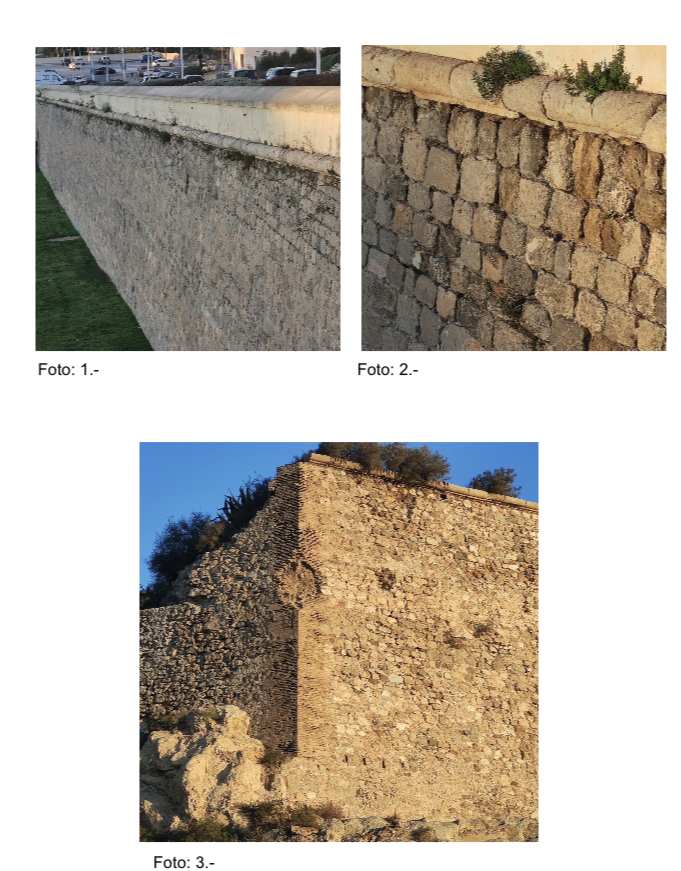 Miembros de la Asociación Cultural Cartagena Patrimonio de la Humanidad han descubierto "el lamentable estado en el que se encuentran el noventa por ciento de nuestro patrimonio defensivo, especialmente la fachada localizada junto a la Avenida Trovero Marín y cuesta del Batel", indican.