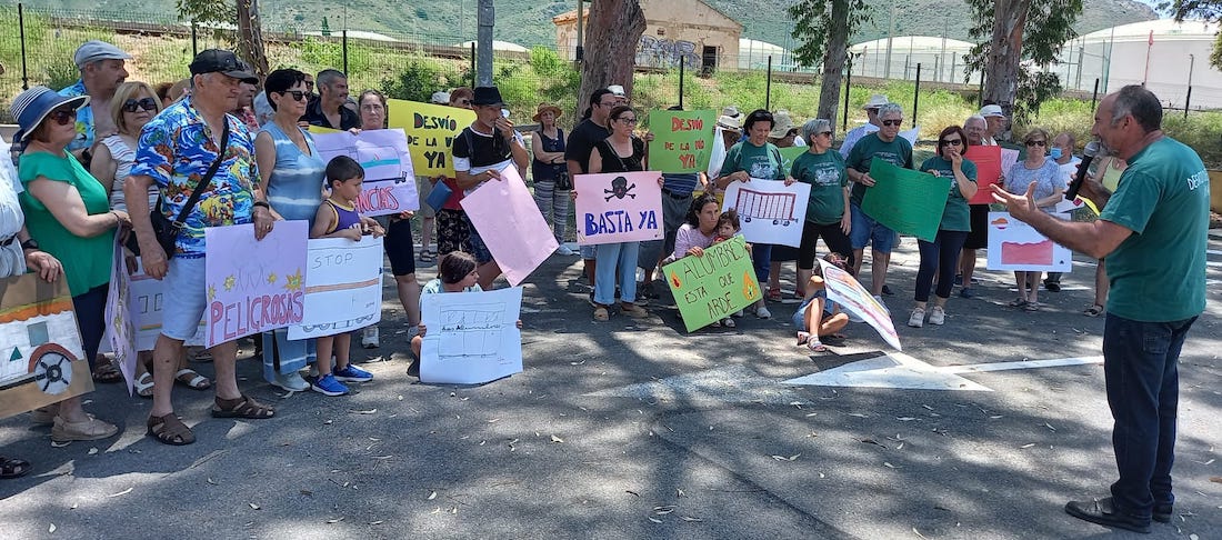 La concentración reivindicativa vecinal convocada por la asociación de vecinos se llevó a acabo en la explanada ubicada junto al polideportivo y muy cerca de la línea férrea que atraviesa Alumbres con mercancias peligrosas y divide en dos al pueblo. Tras recordar Fulgencio Andreu, presidente vecinal, los motivos de esa reclamación, se ha llevado a cabo una recogida de firmas que se presentarán junto a una denuncia para reclamar los daños que están sufriendo las viviendas de la zona del Zaraiche por el trasiego de trenes.