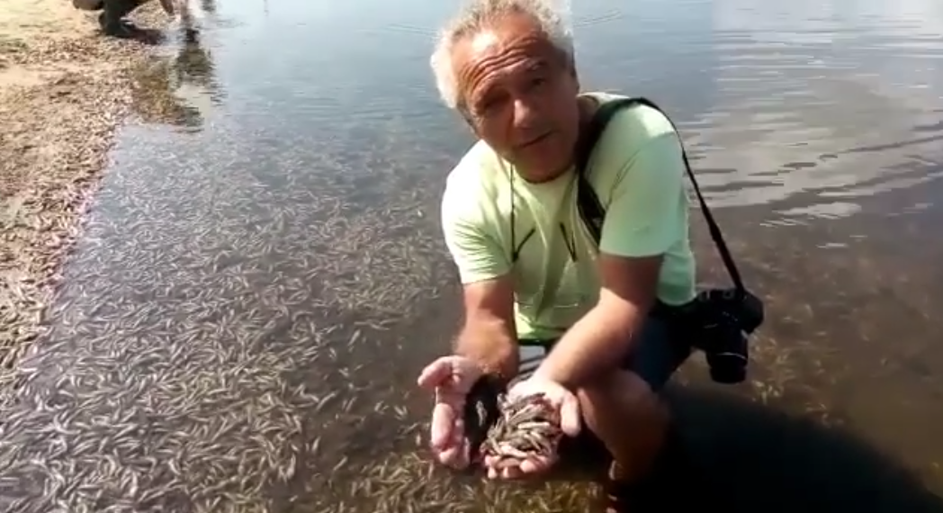 Sexto día consecutivo en la que playas del entorno del Mar Menor aparecen con peces muertos, entre otras especies marina, y que obliga a las autoridades a cerrar arenales al baño para que las brigadas lleven a cabo la retirada de estos miles de cuerpos.