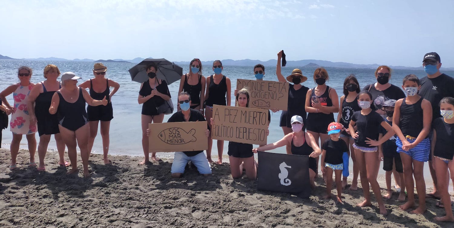 Se han recabado más de trescientas mil rúbricas, pero aún faltan para el medio millón y ahí trabajan este colectivo y otros (Banderas negras, Pacto por el Mar Menor...), además de numerosos voluntarios particulares. De forma paralela, se suceden los actos de luto por la situación del Mar Menor.