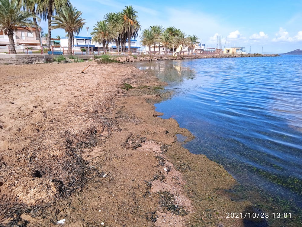 Residentes en la población cartagenera del Mar Menor se han dirigido a nuestro ‘Buzón de los lectores’ para expresar su enorme malestar “por la cantidad exagerada de biomasa en el arenal y en el agua… Hay más de cincuenta metros de playa con algas muertas pudriéndose y con fanto. Es insoportable”, indica, añadiendo que los propios vecinos han tratado de retirarlas, “pues no queremos que se convierta en otra playa de Los Urrutias, pero no tenemos los medios”.