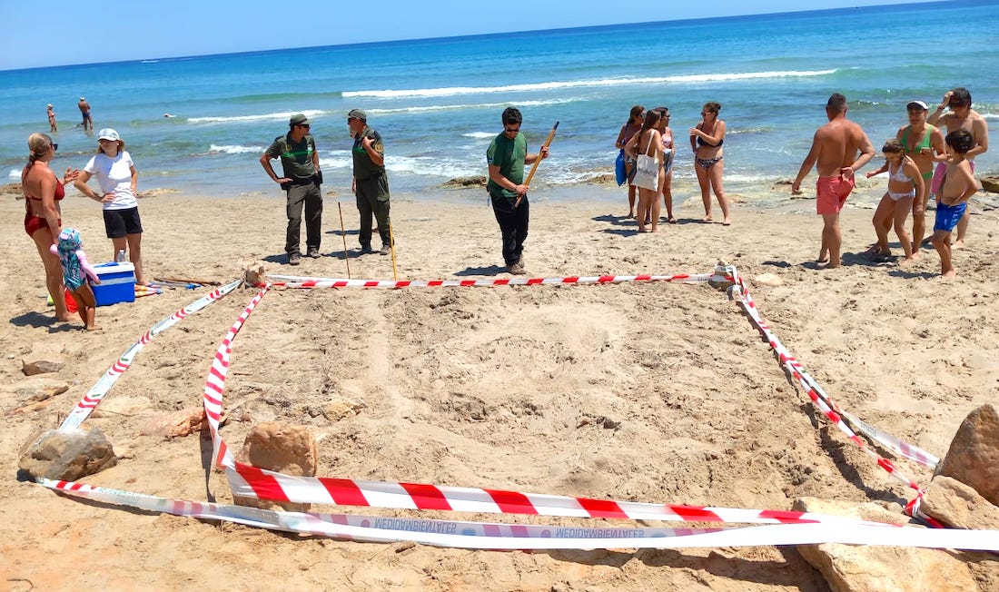 Hasta la zona se desplazaron los veterinarios del Centro de Recuperación de Fauna Silvestre (CRFS) que, tras el análisis de cada uno de los cuatro rastros y el registro de las medidas establecidas en el protocolo, descartaron la existencia de un nido en la zona. La tortuga avistada estaba perfectamente identificada, pues es una de las que fue marcada la semana anterior con un emisor de señal por satélite por los técnicos de la Universidad Politécnica de Valencia y de Orihuela.