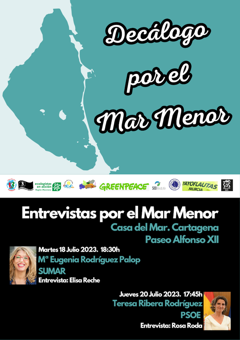Las organizaciones sociales que han promovido el Decálogo por el Mar Menor, han solicitado también a las cuatro principales candidaturas a la presidencia del Gobierno Central el próximo 23 de julio, que defiendan en público su parecer respecto a este documento, y dejen clara su proyecto para resolver la crisis ecológica, social y económica del Mar Menor.