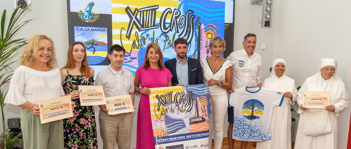 La prueba tiene carácter solidario en beneficio de Hermanitas de los Pobres, Asido y la Asociación de Celíacos de la Región. De hecho, durante la presentación del cross que ha tenido lugar este martes, 25 de julio, en el Palacio Consistorial, se ha hecho entrega de los cheques solidarios de la pasada edición a las entidades beneficiarias.