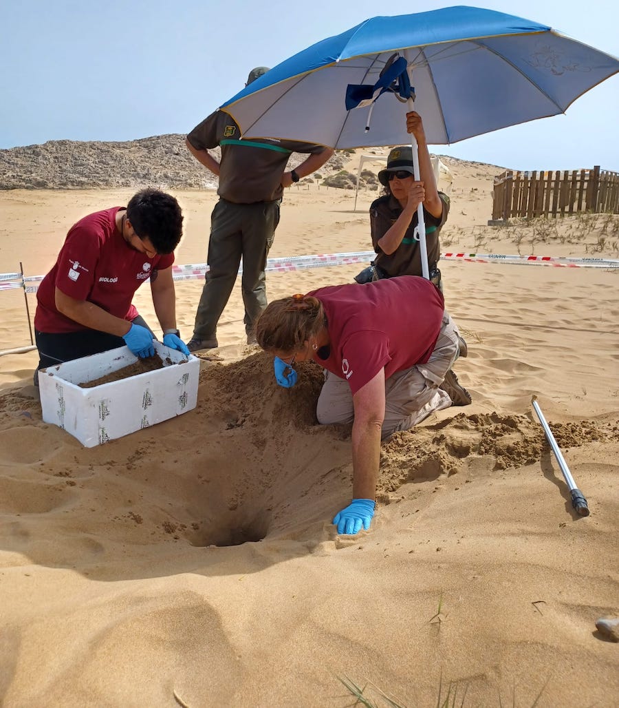 “Tras excavar en los dos rastros dejados por una tortuga boba se pudo comprobar que sí había huevos en uno de ellos. Para facilitar su vigilancia, la decisión fue la de traslocar los huevos de este nido a escasos 10 metros del que ya tenemos dentro de la playa de Calblanque”, argumentó la directora general de Medio Natural.