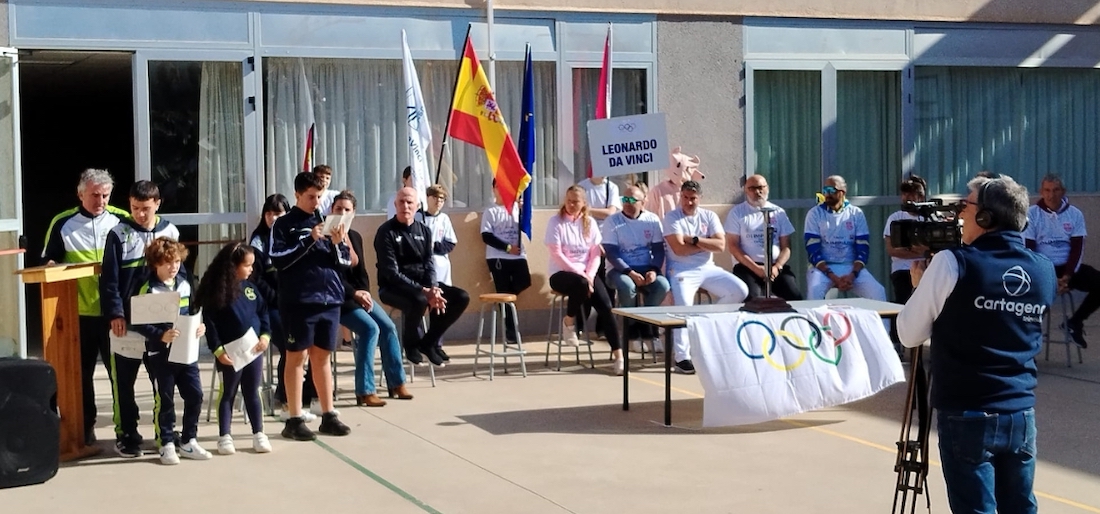 La OlimpiADE, el programa de actividades que el Ayuntamiento de Cartagena organiza para fomentar el deporte en los centros educativos, coincidiendo con los Juegos Olímpicos de París 2024, ha comenzado este lunes 19 de febrero con el primer traslado de la antorcha olímpica de Barcelona 92, desde el campo de fútbol municipal Juan Huertas de Los Belones hasta el Colegio Leonardo Da Vinci de la misma localidad. Este martes también ha estado en el colegio Virginia Pérez de El Algar y el miércoles en el San Ginés de la Jara de El Llano del Beal.