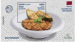 Las emisiones de esta serie han sido el resultado de un convenio de colaboración suscrito entre Correos y la Real Academia de Gastronomía (RAG). Dentro de esta serie filatélica ya se ha rendido homenaje a platos de diferentes puntos de la geografía nacional como el pulpo a feira, el gazpacho andaluz, la paella valenciana, el cocido madrileño o el bacalao al pil-pil, entre otros.El caldero, antaño comida de pescadores que toma su nombre del recipiente de hierro donde se cocina, es invitado en la actualidad en cualquier mesa de los restaurantes más prestigiosos. Servido en dos platos, primero el arroz y luego el pescado, tal como lo hacían los pescadores, con el mújol como principal protagonista también admite la dorada del Mar Menor y, la “morralla” para la preparación del caldo, sin olvidarnos de la ñora que le da un toque inconfundible.