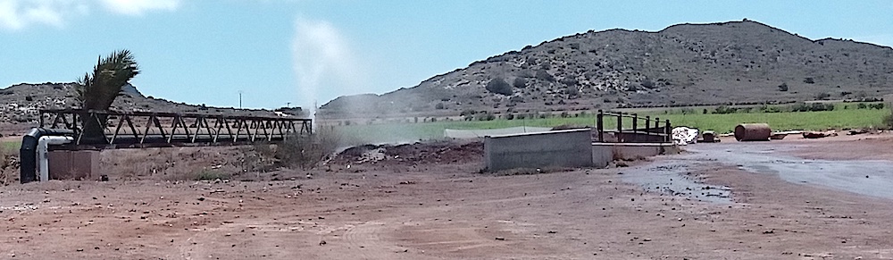 Un lector ha remitido la fotografía que ha tomado esta mañana de la columna de agua que se ha formado esta mañana debido a una avería y que han visto bastantes conductores que pasaban por la vía rápida hacia La Manga.