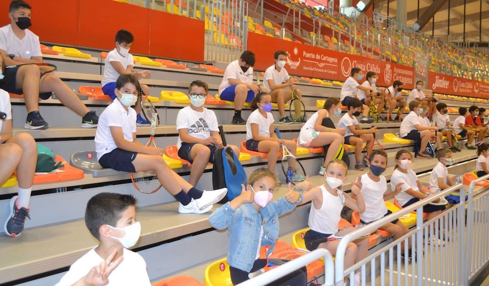 La escuela municipal de tenis de la concejalía de Deportes del Ayuntamiento de Cartagena, clausuró, en la pista central del Palacios de los Deportes, la temporada 2020-21 con una exhibición llevada a cabo por los alumnos junto a sus profesores, estando arropados por familiares desde la grada. El acto también incluyó la entrega de trofeos de campeonato 'Memorial José Manuel Cánovas Sánchez'.