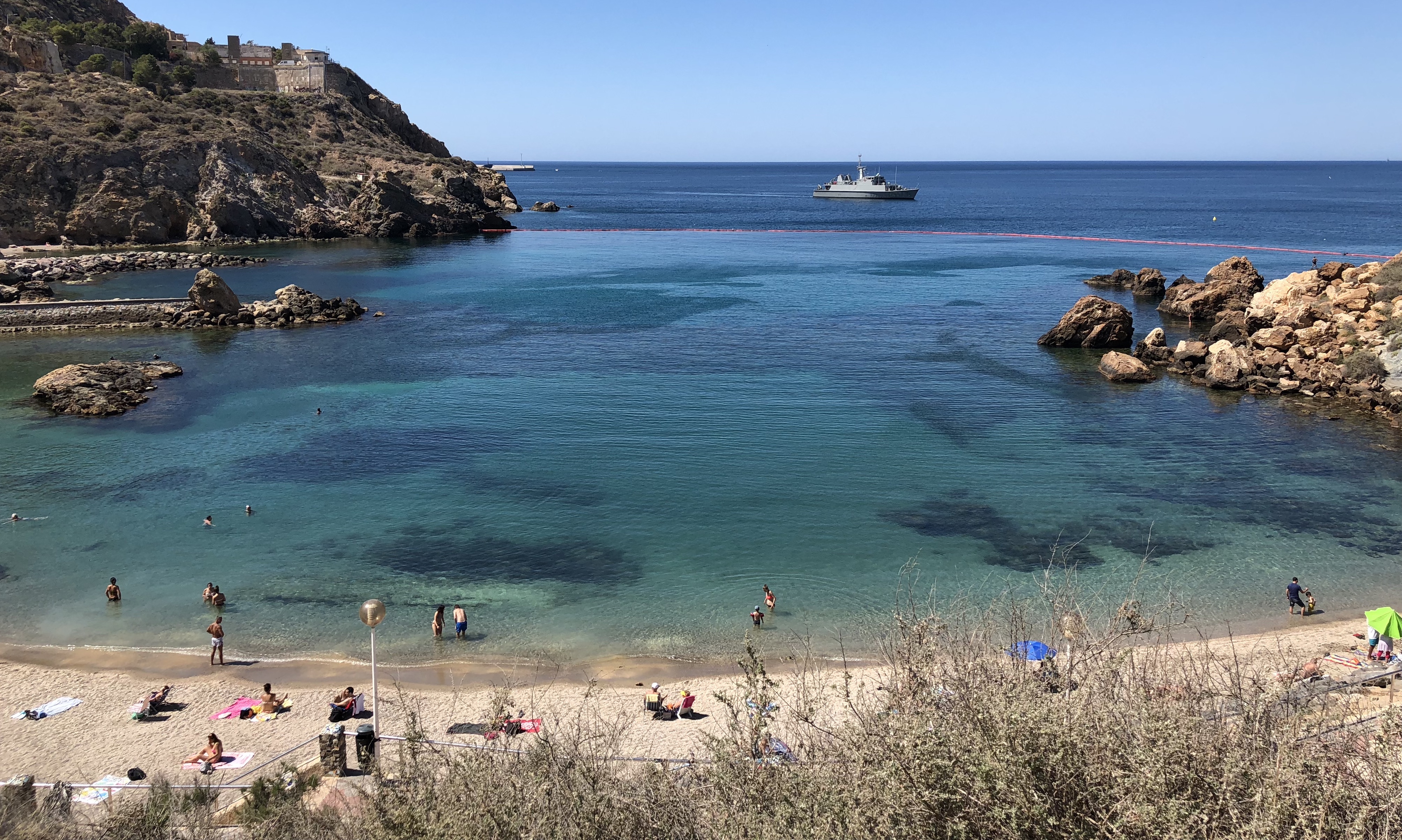 La Autoridad Portuaria de Cartagena ha colocado un año (lo viene haciendo desde 2004) más la barrera de protección, de un metro de calado, en la playa de Cala Cortina para garantizar un baño seguro a los bañistas que disfrutan de la única playa urbana de Cartagena, en el marco del cumplimiento de sus objetivos de protección del entorno natural y su responsabilidad social.