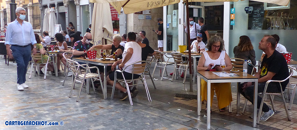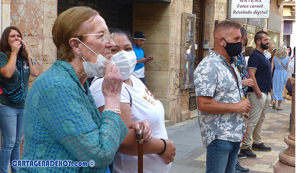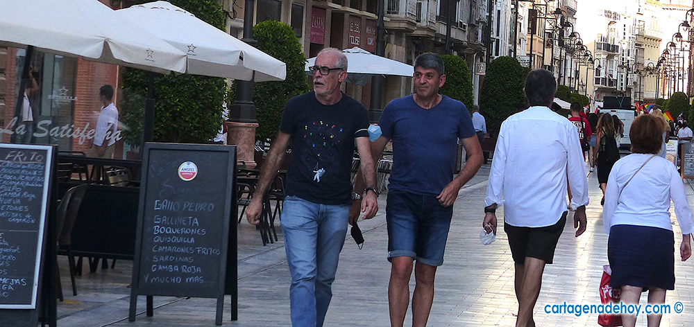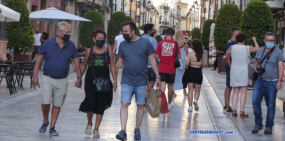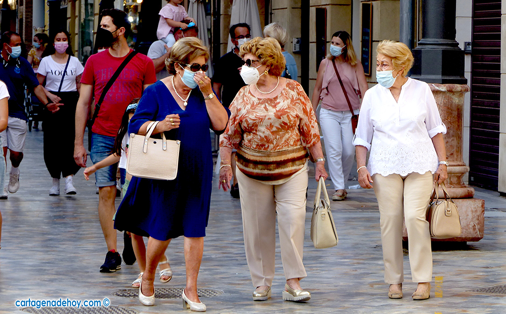 Primer fin de semana sin la obligatoriedad de llevar mascarillas en espacios exteriores si se guarda la distancia de seguridad de metro y medio con no convivientes. Por lo observado en la ciudad de Cartagena, fueron mayoría de personas las que mantuvieron sus rostros cubierto con este antifaz sanitario. Unos lo hicieron por las circunstancias y otros, simplemente, porque consideran que aún es pronto para relajar las medidas anticovid.