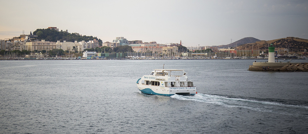 A las 21.00 horas, todos los jueves de julio (excepto el 8) y agosto, zarpará desde la Escala Real del Puerto el barco para dar comienzo a una romántica y suave travesía alrededor de la bahía de Cartagena, para contemplar la puesta sol, costeando las montañas que abrazan la bahía, la Isla de Escombreras, sus faros y algamecas, trasladándonos a aquellos viajes de civilizaciones lejanas que llegaron a Cartagena por mar y escribieron importantes capítulos de la historia.