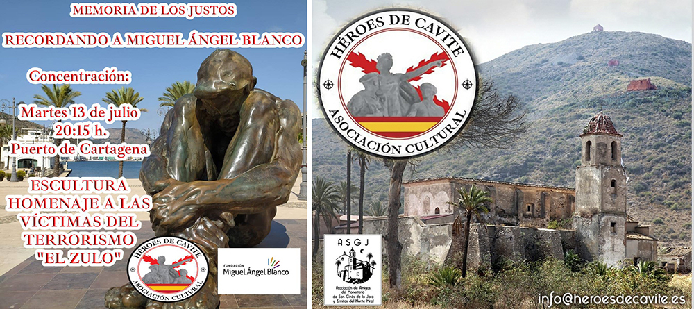 Para el martes día 13 de julio, a las 21.30 horas, se convoca a la ciudadanía a una concentración junto a 'El zulo', el monumento dedicado a las víctimas del terrorismo que se encuentra en la explanada del puerto de Cartagena. Ese mismo día de hace 24 años atrás fue asesinado Miguel Ángel Blanco.