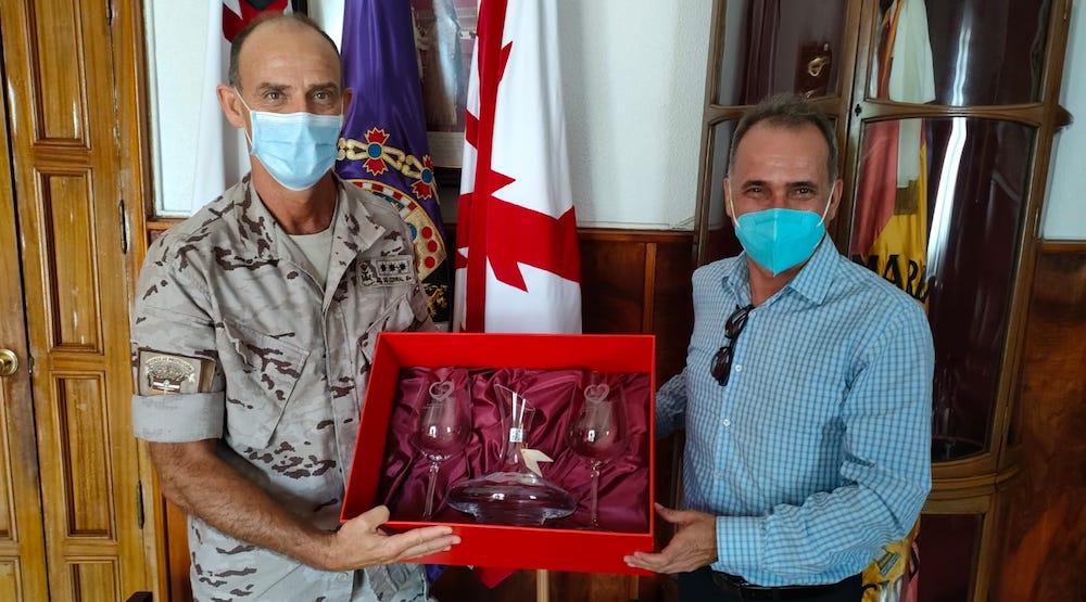 El Coronel Comandante del Tercio de Levante, D. José Carlos del Corral Lara, ha recibido al presidente de la asociación benéfica Cartagena por la Caridad, Matías Barco Cabrera, al que acompañaba el vicepresidente, José Castillo Abreu.