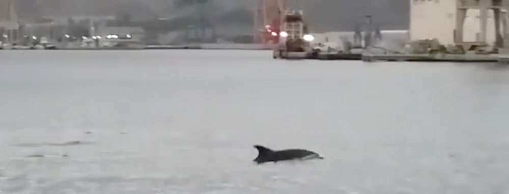 ‘Nova Ocio’ ofrece en su perfil de Facebook una grabación de vídeo efectuada ayer a un grupo de delfines que se dejaron ver por la dársena de Cartagena.