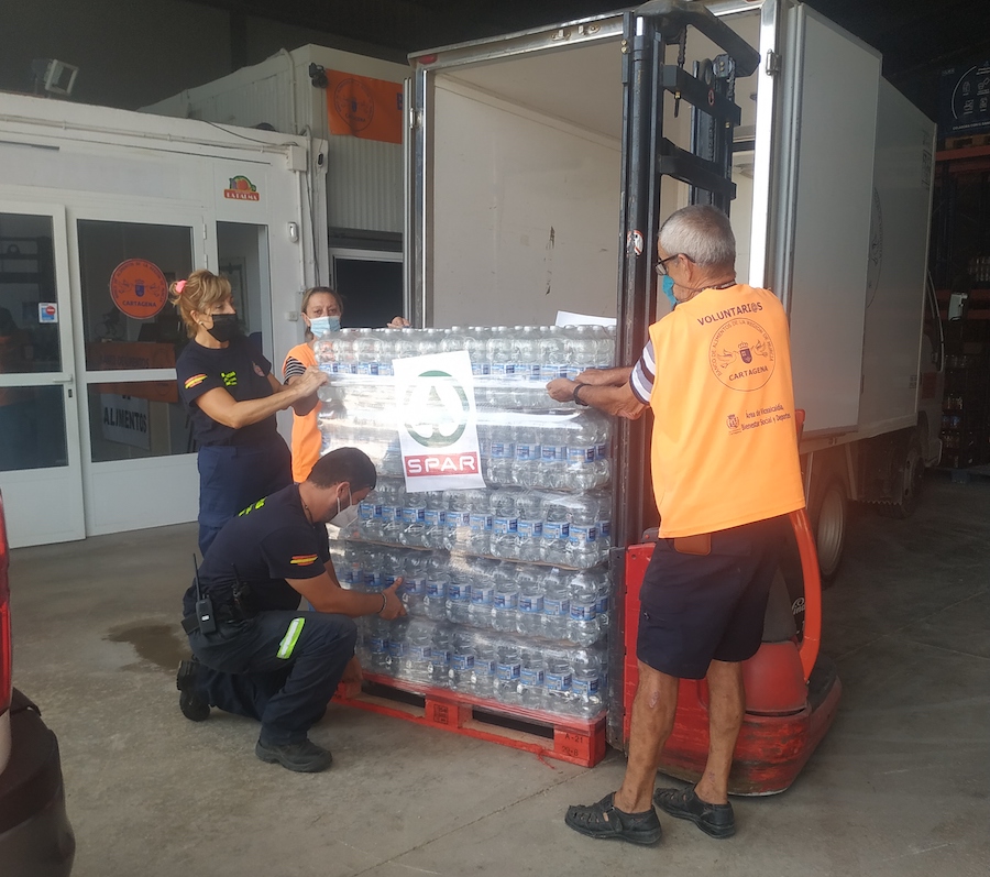 Banco de Alimentos de la Región de Murcia con sede en Cartagena agradece a la dirección comercial de Spar, cooperativa regional surgida en nuestro municipio, por colaborar con un importante obsequio de agua para minimizar, en lo posible dentro de sus posibilidades, los efectos de las jornada con muy altas temperaturas de este final de semana en personas necesitadas.
