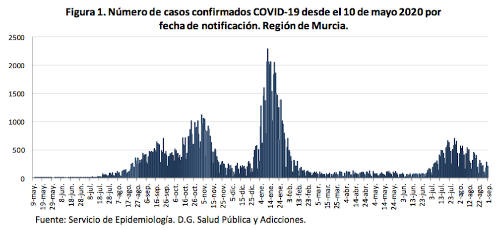 De los 212 nuevos casos, 60 corresponden al municipio de Murcia, 36 a Lorca, 17 a Cartagena, 16 a Yecla, 10 a Molina de Segura, 6 a Los Alcázares, 5 a Beniel, 5 a Puerto Lumbreras, 5 a Torre Pacheco, 4 a Alcantarilla, 4 a Alguazas, 4 a Fortuna, 4 a Jumilla, 4 a Totana. El resto están repartidos por los demás municipios.