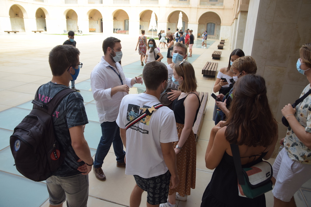 El pasado año, la UPCT solo recibió a 70 estudiantes erasmus a principios de curso debido a la pandemia sanitaria. Esta mañana muchos erasmus preguntaban por las normas de uso de mascarillas y hasta una alumna moldaba tuvo que pedir una pues la había olvidado con el ajetreo de estar recién llegada a la ciudad. La Politécnica obliga al uso de la mascarilla en todas las instalaciones de la universidad, también al aire libre.