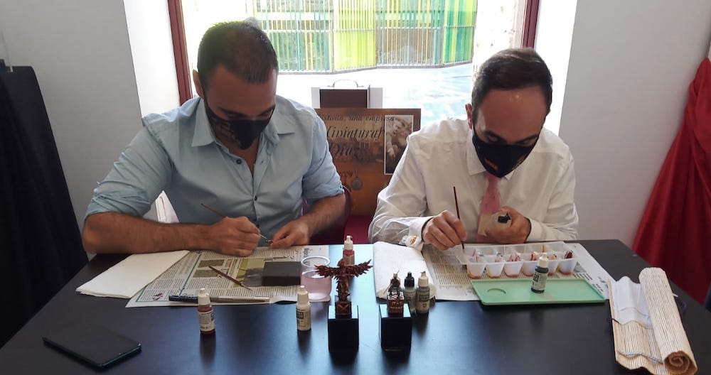 La exposición muestra también parte del material con el que se realiza el modelado de los productos, esculturas terminadas, otras en proceso, material de fundición, y una serie de láminas realizada a lápices de colores. Asimismo, los trabajadores de Miniaturas Díaz llevan a cabo elaboración de sus figuras en directo.