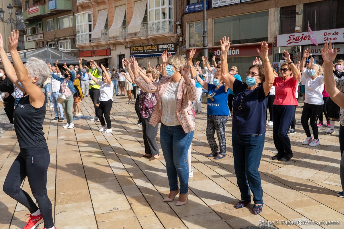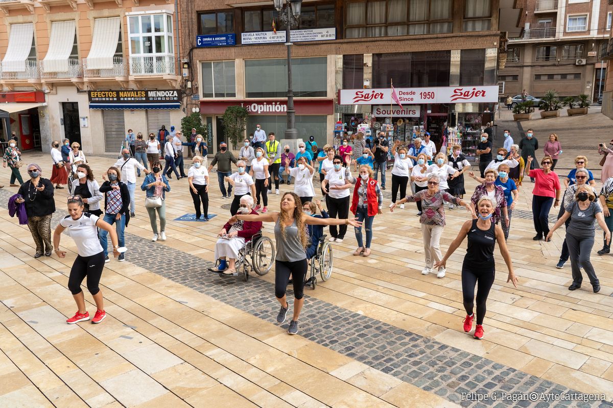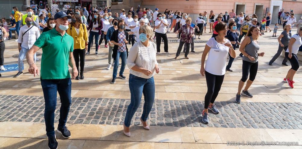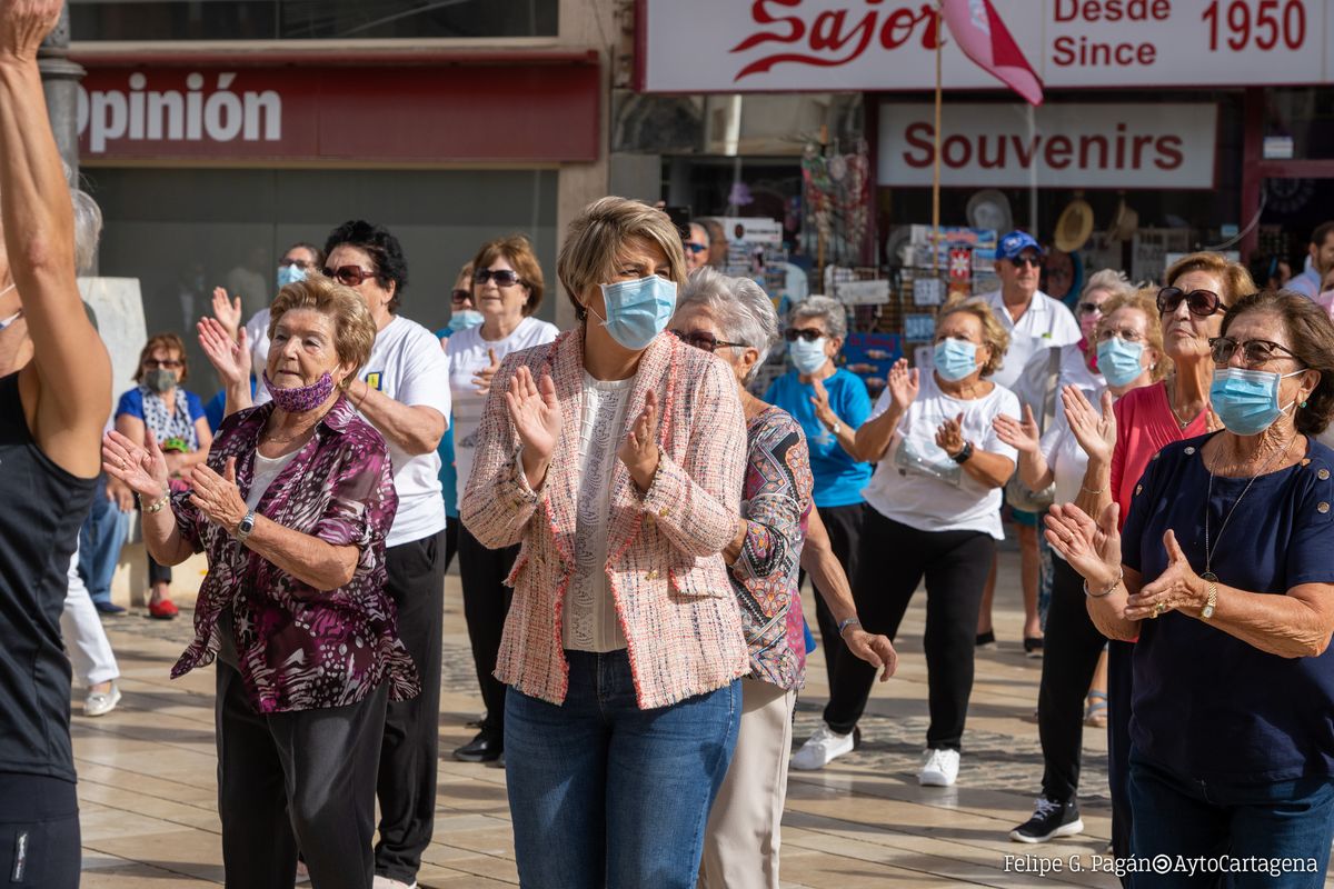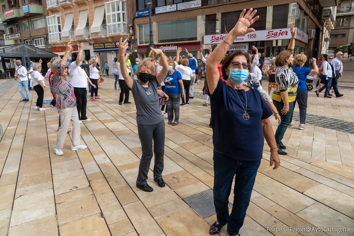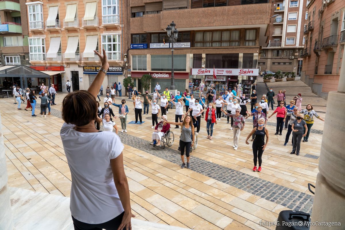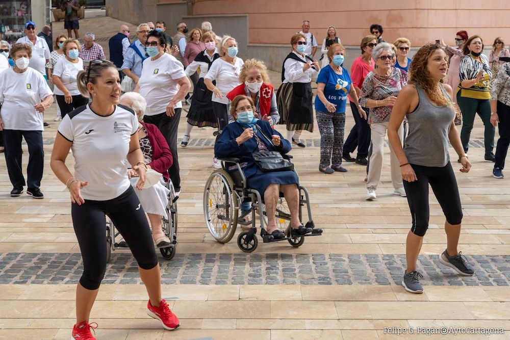Entre las actividades con más movimiento destacó una clase de baile que impartieron las monitoras de la Concejalía de Deportes Tere, Paulina, Carmen y Jessica. En ella participaron decenas de personas de Cartagena, a las que se sumaron también varios turistas. Entre las participantes que siguieron los pasos al ritmo de la música se encontraba la presidenta de la Federación de Asociaciones de Centros de Personas Mayores, María Beteta, y la propia alcaldesa Noelia Arroyo.