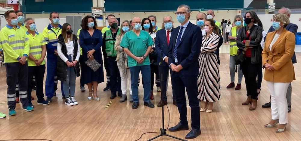 El consejero de Salud, Juan José Pedreño, manifestó el agradecimiento de la sociedad a los profesionales que han administrado la vacuna contra el coronavirus en el punto de vacunación masivo de La Rambla en Cartagena, y que desde que abrió sus instalaciones el 24 de mayo ha administrado más de 270.00 dosis.