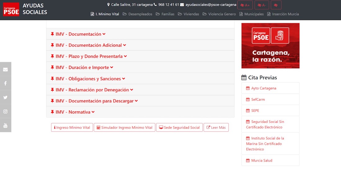 El PSOE de Cartagena presenta una página web que facilita a cualquier persona, de una manera clara y centralizada, la información necesaria para poder acceder a todo el amplio abanico de ayudas sociales que se encuentran en vigor.