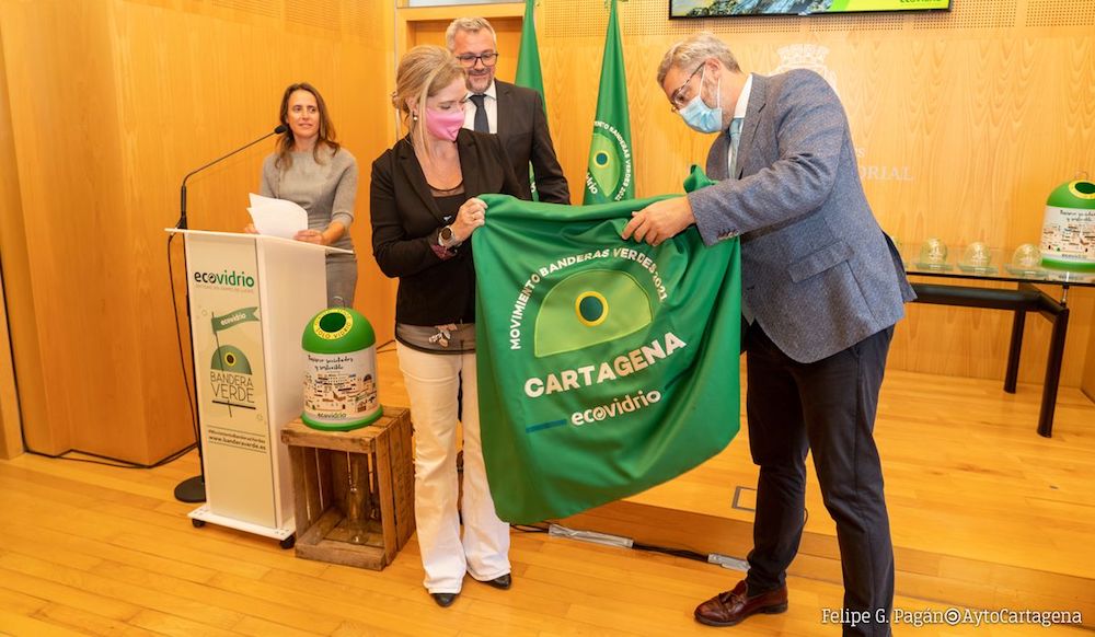 Ecovidrio, la entidad sin ánimo de lucro encargada de la gestión del reciclado de los residuos de envases de vidrio en España, y la consejería de Agua, Agricultura, Ganadería, Pesca y Medioambiente han reconocido a Cartagena como ganadora de la campaña Banderas Verdes en la Región de Murcia. La entrega del estandarte es la culminación a una campaña intensiva que ha tenido lugar en los meses de verano y reconoce el esfuerzo de la hostelería local por el reciclaje de envases de vidrio en temporada alta y el activismo de los consistorios para sensibilizar a sus ciudadanos y visitantes.