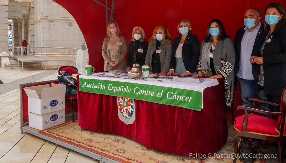 Voluntarias de la Asociación Española Contra el Cáncer han montado esta mañana mesas petitorias en diversos puntos de la ciudad y de algunos barrios, entre las que figura la instalada junto al Palacio Consistorial, con la colaboración del Ayuntamiento de Cartagena. Ahí han depositado su ‘voluntad’ la alcaldesa y tres ediles para colaborar con la labor que se lleva a cabo por este colectivo, que además ofrece la oportunidad de ayudar adquiriendo un calendario solidario de la Policía Nacional.