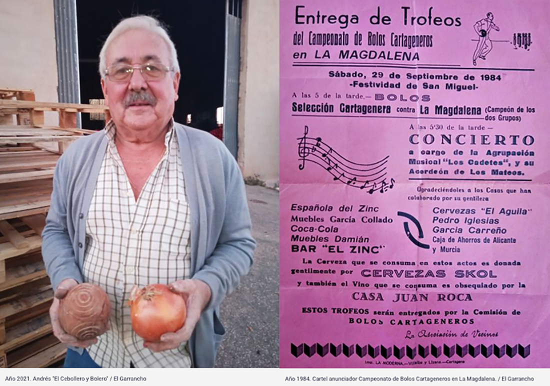 Esta semana el protagonista es Andrés Sánchez Otón, conocido como ‘El Cebollero’, nacido en La Magdalena, en la llamada ‘casa de la tía Eugenia’ en el año 1947. Pasó muchos años de su vida entre bolas (canicas y bolos) y cebollas. Cargaba el camión y se iba a jugar hasta las tantas de la madrugada, apurando para bajar a la lonja. En 1982 obtuvo el trofeo ‘Pichichi’ (el que más bolos derriba en el campeonato de liga). También recuerda que fue a principios de los años ochenta cuando los vecinos de la Magdalena construyeron la pista de los bolos, por iniciativa de Diego Iglesias, apodado ‘El Barbero’.