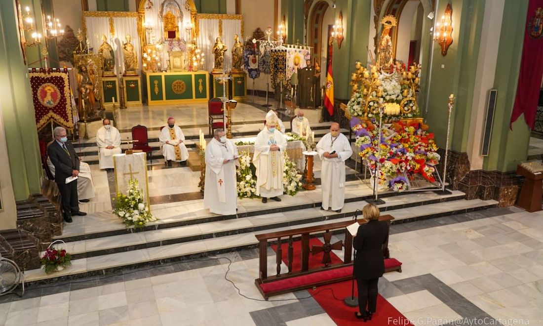 La ofrenda conmemorativa la ha realizado la alcaldesa, que ha vuelto a pedir el amparo de la Virgen y la protección de los santos cartageneros para salir de la pandemia. “Venimos para seguir rogando vuestro amparo en tiempos en que otras catástrofes han amenazado la salud y los tesoros naturales de los cartageneros. Os pedimos que nos iluminéis para administrar con justicia los intereses de vuestro pueblo y que nos ayudéis a proteger, como vosotros hicisteis, a los cartageneros que más lo necesitan”.
