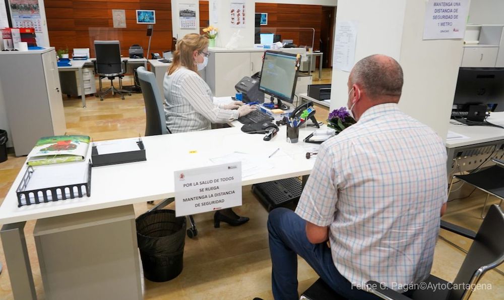 El servicio del del Ayuntamiento de Cartagena, ubicado en el edificio administrativo de la calle San Miguel de la ciudad, se ha visto obligado este jueves a cerrar su atención presencial durante esta semana debido al contagio por COVID-19 de siete funcionarios, prácticamente la mitad de su personal. Las citas presenciales que había para este jueves y viernes están siendo reubicadas en otras fechas.
