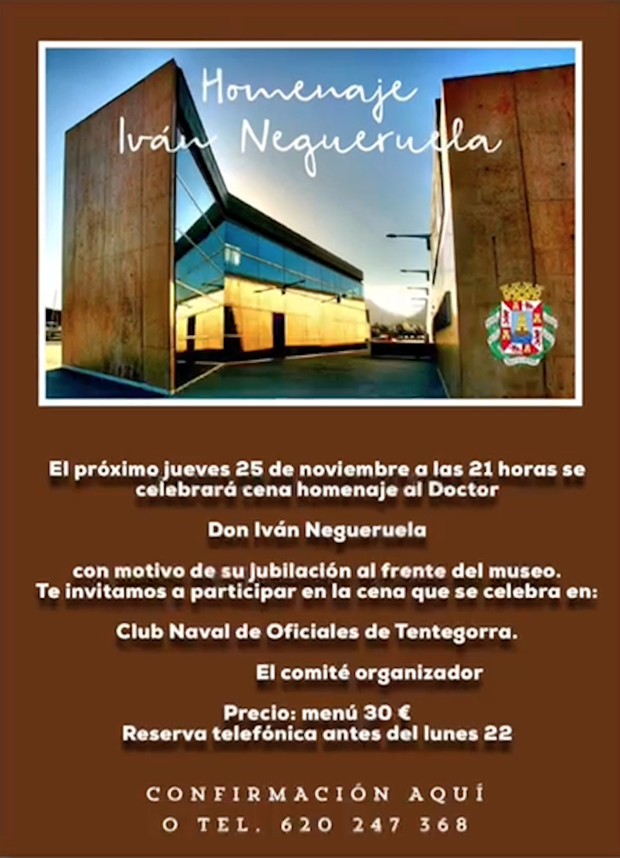 Leer más...Con motivo de la jubilación del director del Museo Nacional de Arqueología Submarina (ARQUA), se ha organizado un homenaje para este próximo jueves en el Club Naval de Oficiales de Tentegorra.