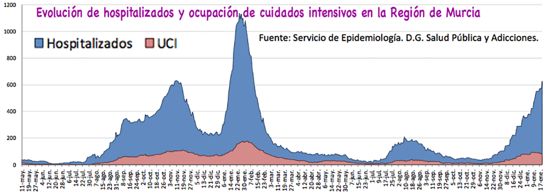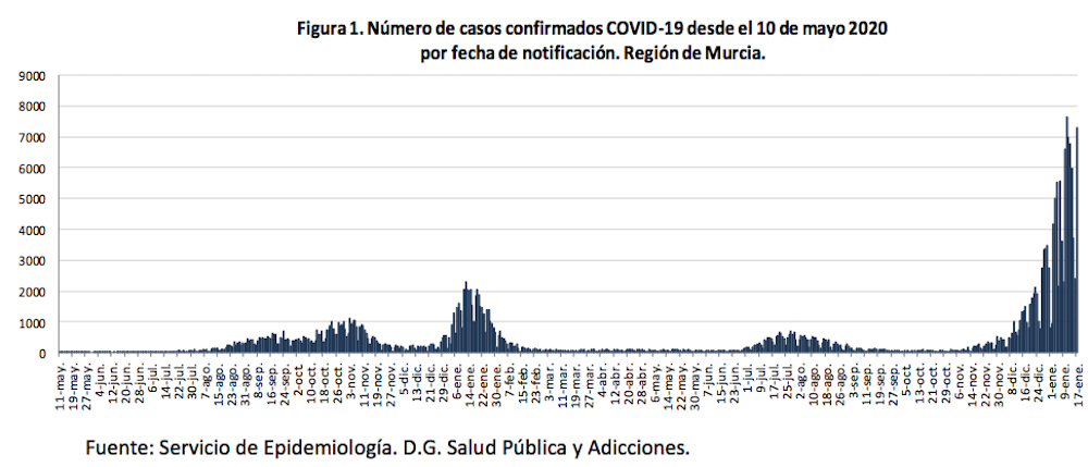 Tras el fin de semana, las cifras vuelven a dispararse en la Región de Murcia con 7.291 nuevos infectados detectados el lunes. Lo mismo sucede en nuestro municipio, donde ayer se detectaron 1.015 y donde en la última semana se llevan acumulados 5.855 contagios, superando claramente la cifra de los siete días anteriores, que fue de 4.524.