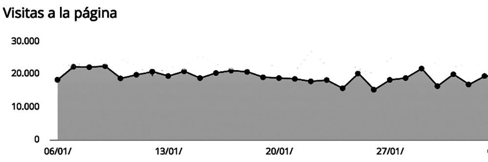 El primer mes del año 2022 se cerró con una media de entradas diarias desde ordenadores diferentes próxima a las veinte mil en cartagenadehoy.com, que también se identifica con la url cartagenadefiestas.com. Se trata de una cifra muy destacada y viene a confirmar la progresión llevada durante el pasado 2021, pese a que parte de nuestro fuerte, como son las tradicionales fiestas, no se han recuperado plenamente. Sí hemos tenido una gran respuesta al final de las actividades navideñas, a los festejos de San Antón, a las entrevistas de los presidentes vecinales y, entre otros, a la actividad procesionista, que va a más conforme se acerca la Semaan Santa.
