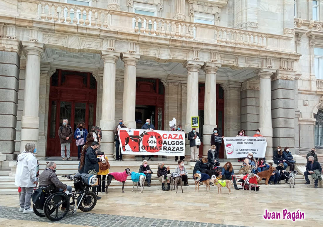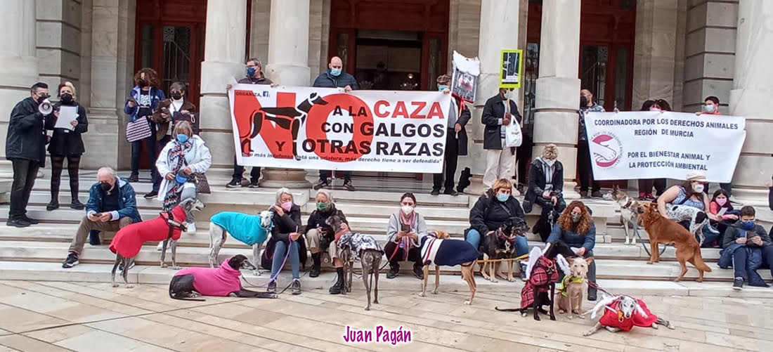 Una decena de personas se manifestaron el pasado fin de semana ante el Palacio Consistorial para gritar “No a la caza”. Lo que empezó siendo manifestaciones contra el uso de perros en la actividad cinegética se ha convertido en un rotundo no a todo tipo de caza. Ni las especies cinegéticas, ni los animales utilizados para su captura, con independencia de raza o especie, merecen sufrir por la simple diversión humana.
