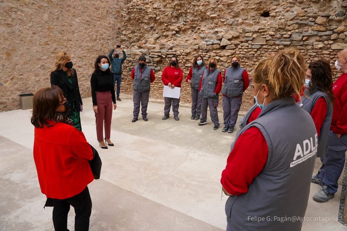 “El objetivo es dinamizar el empleo entre los colectivos que encuentran mayores dificultades de acceso al mercado laboral como los jóvenes, desempleados mayores de 45 años o los parados de larga duración”, según explicó la directora del Servicio Regional de Empleo y Formación (SEF), Marisa López, durante la entrega de diplomas a 40 personas en desempleo en Cartagena. Estos alumnos-trabajadores se han formado durante nueves meses en los sectores de la jardinería, construcción y limpieza, en el marco del programa ‘Teatro Romano’, llevado a cabo por la Agencia de Desarrollo Local y Empleo de Cartagena (ADLE) con una subvención del SEF de 609.000 euros.