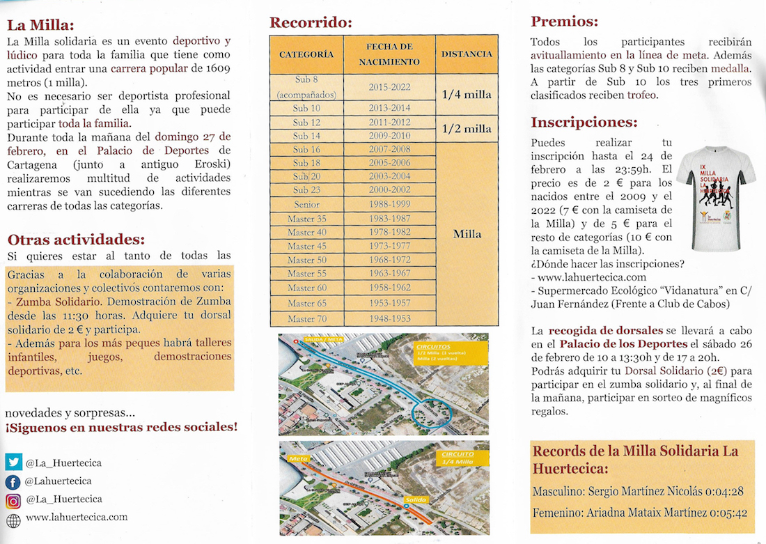La milla solidaria de La Huertecica se celebra el día 27
