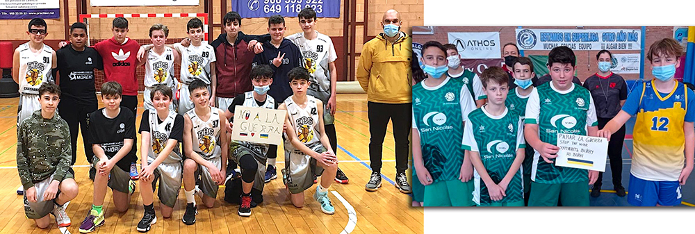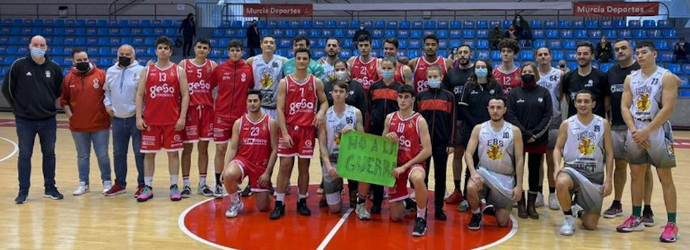 Equipos, jugadores, árbitros, auxiliares de mesa, técnicos... Todo el baloncesto de la Región de Murcia ha querido mostrar este fin de semana su solidaridad con el pueblo ucraniano luciendo carteles elaborados por los propios baloncestistas.