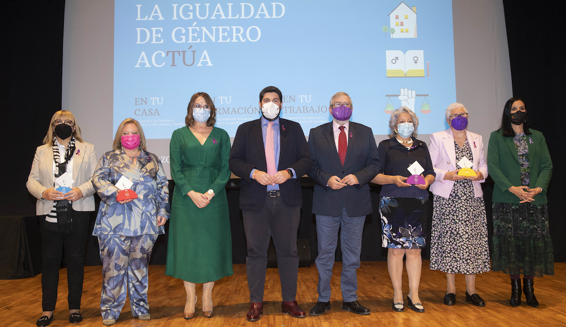 Los ‘Premios 8 de marzo’ de la Comunidad Autónoma han distinguido a la abogada y presidenta de la Confederación de Organizaciones Empresariales de Cartagena y Comarca (COEC) por su lucha a favor de la igualdad, pues a través de la patronal promueve la inserción laboral de las mujeres y la erradicación de la brecha salarial. En la imagen figura en segundo lugar por la izquierda del lector.