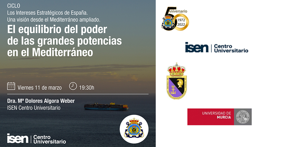 Es el título de la conferencia que, con motivo del 50 aniversario del CDSCA de Cartagena, será impartida por la doctora María Dolores Algora Weber este próximo viernes, 11 de marzo, a las 19.30 horas, en ISEN Centro Universitario (Menéndez Pelayo, 8 de Cartagena) dentro del ciclo 'Los intereses estratégicos de España - Una visión desde el Mediterráneo”.