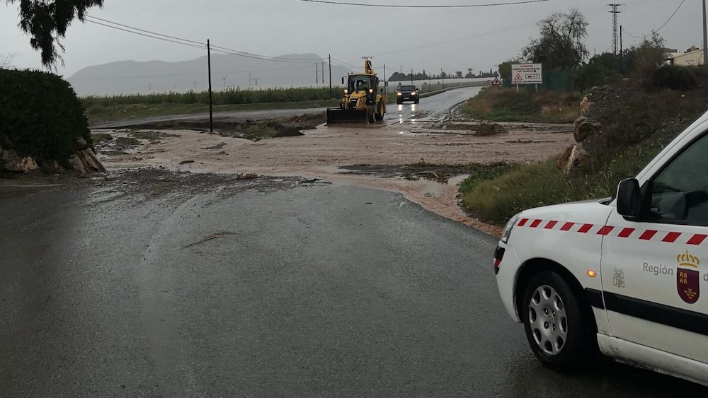 La tormenta de agua ha ocasionado el corte de al tráfico de la vía que conecta Cartagena con San Javier a la altura de La Aparecida (RM-35) y la carretera de El Mojón (RM-F33), además de un nuevo arrastre de barro al Mar Menor. El teléfono 1-1-2 ha recibido 46 avisos hasta las 13 horas, siendo Cartagena el municipio con mayor incidentes (12).